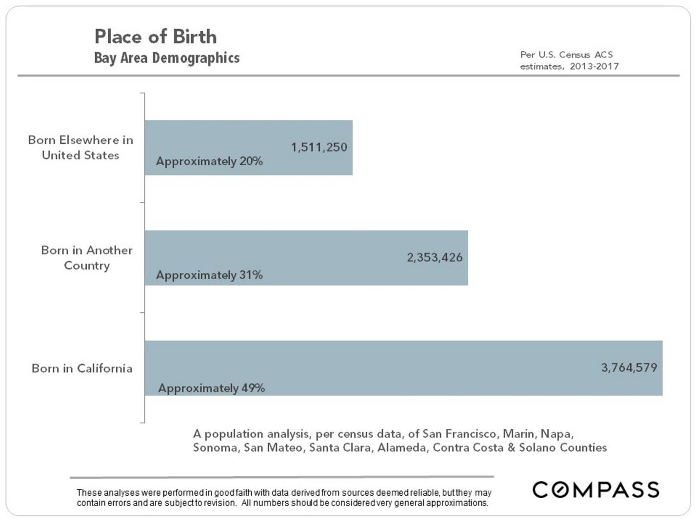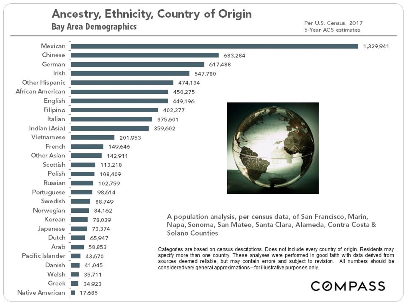 Before looking at the next charts, here is the demographics quiz question for today: What 4 nationalities account for the origin of the highest numbers of Bay Area residents?