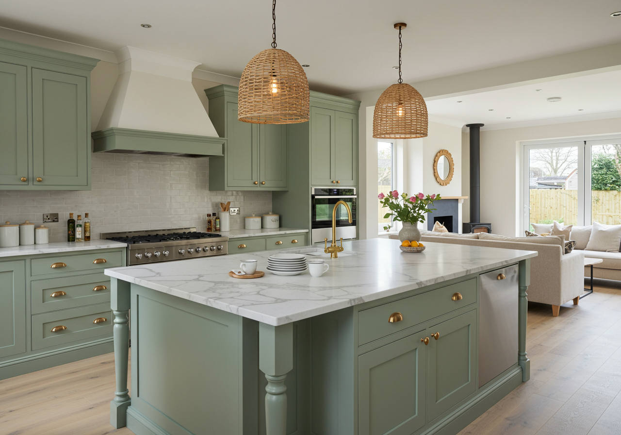 — Enhancing the kitchen with beautiful quartz countertops, tile backsplash and painted cabinets.