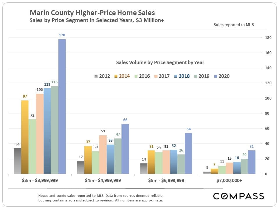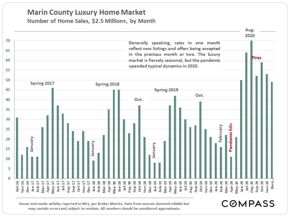 Yet...IPO mania breaks out again, stock markets reach new highs, vaccines begin to arrive – and, after an initial crash in activity, the real estate market went into hyper-drive, with median home sales prices hitting new peaks. The luxury home market in particular was extremely strong.