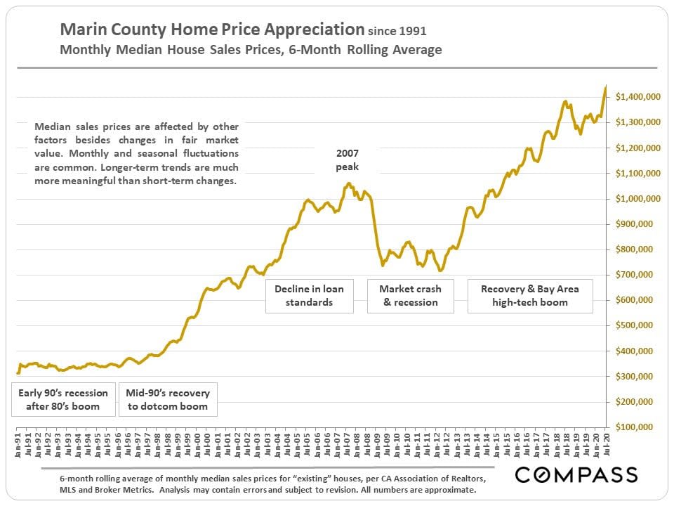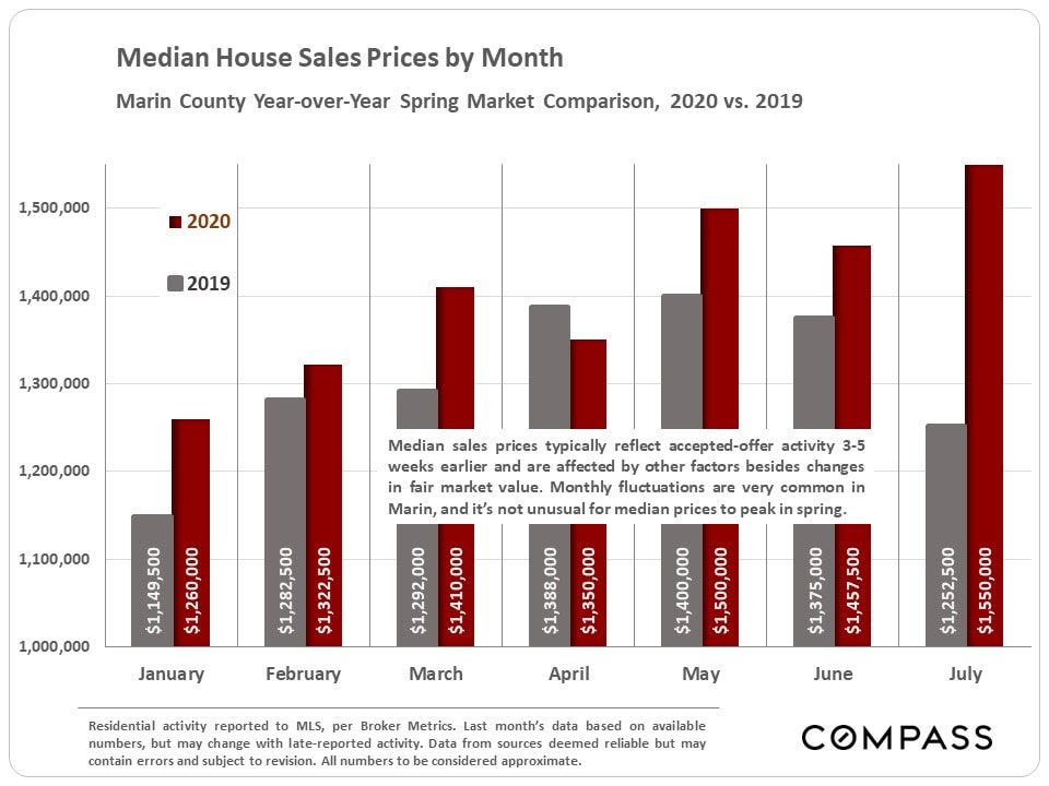 Beautifully renovated homes with large kitchens and family rooms, designated spaces for home offices and at-home learning, serene outdoor spaces etc. continue to be in high demand from the flood of San Francisco families and move- up Marin buyers searching for a better quality of life.