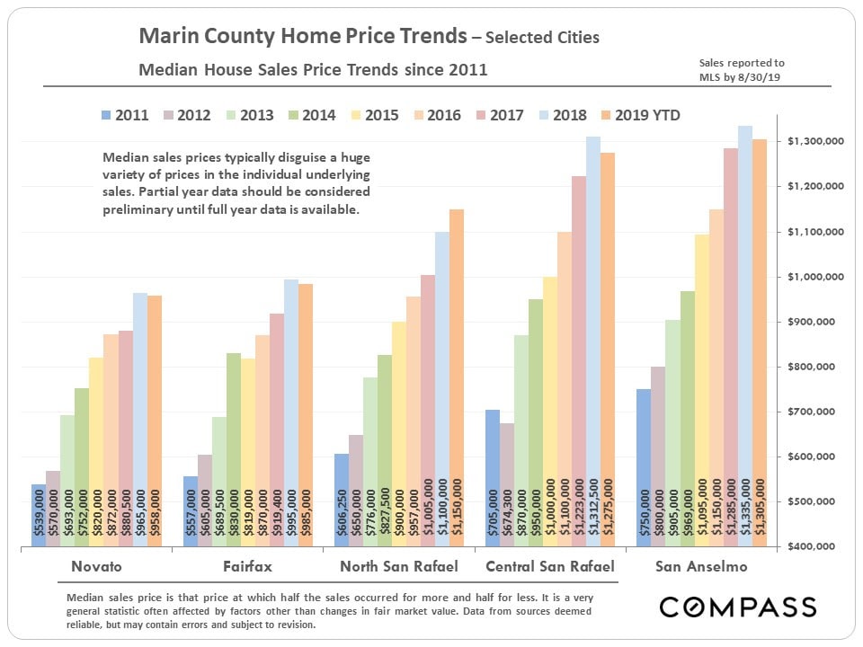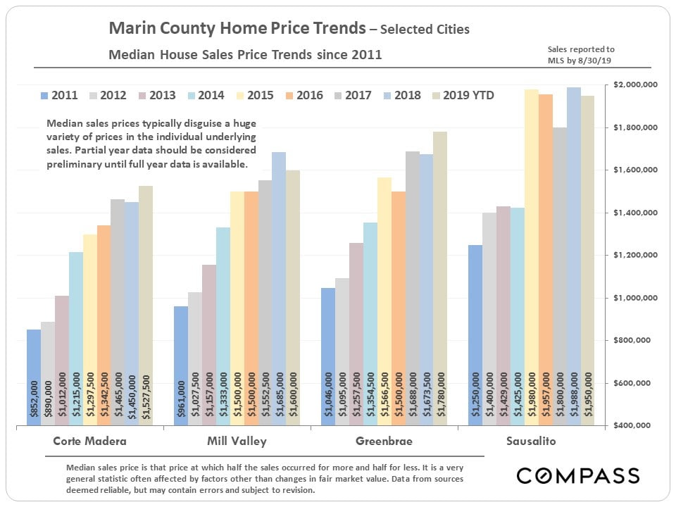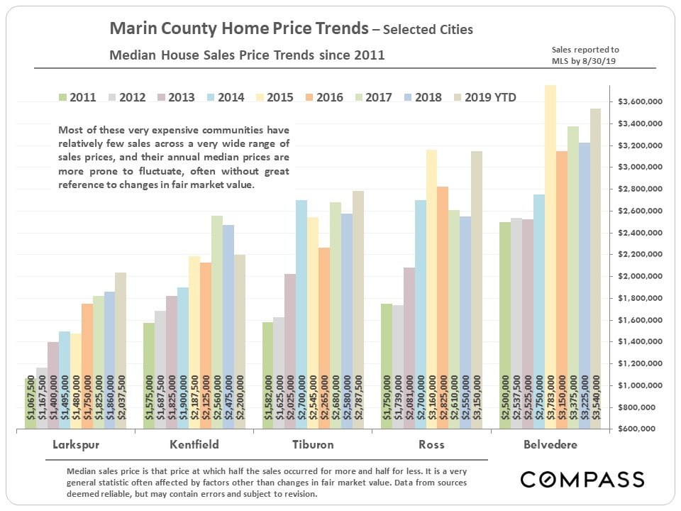 Some of the city markets delineated below have few sales, especially in a specific home size: A blank field indicates insufficient data. A house with more bedrooms is not necessarily larger than one with less, and the size and quality of homes of identical bedroom counts vary enormously. Many factors affect sales prices besides neighborhood/ bedroom count: quality of location within the neighborhood, condition, size, architecture, views, amenities, parking, outdoor space, etc. Median prices should always be considered generalities.