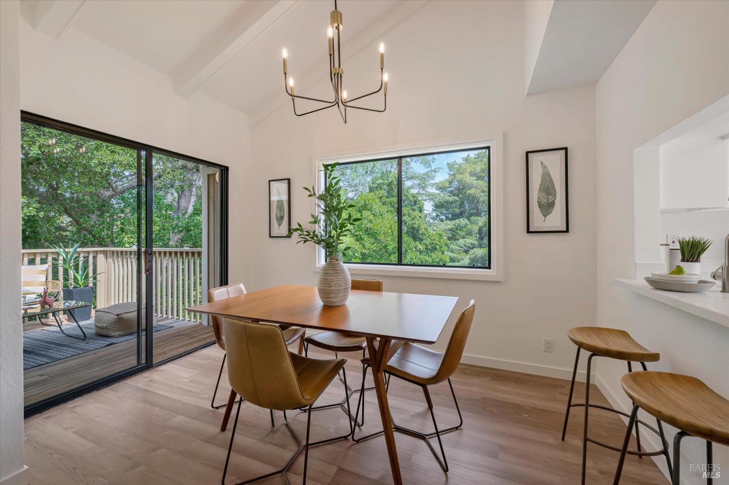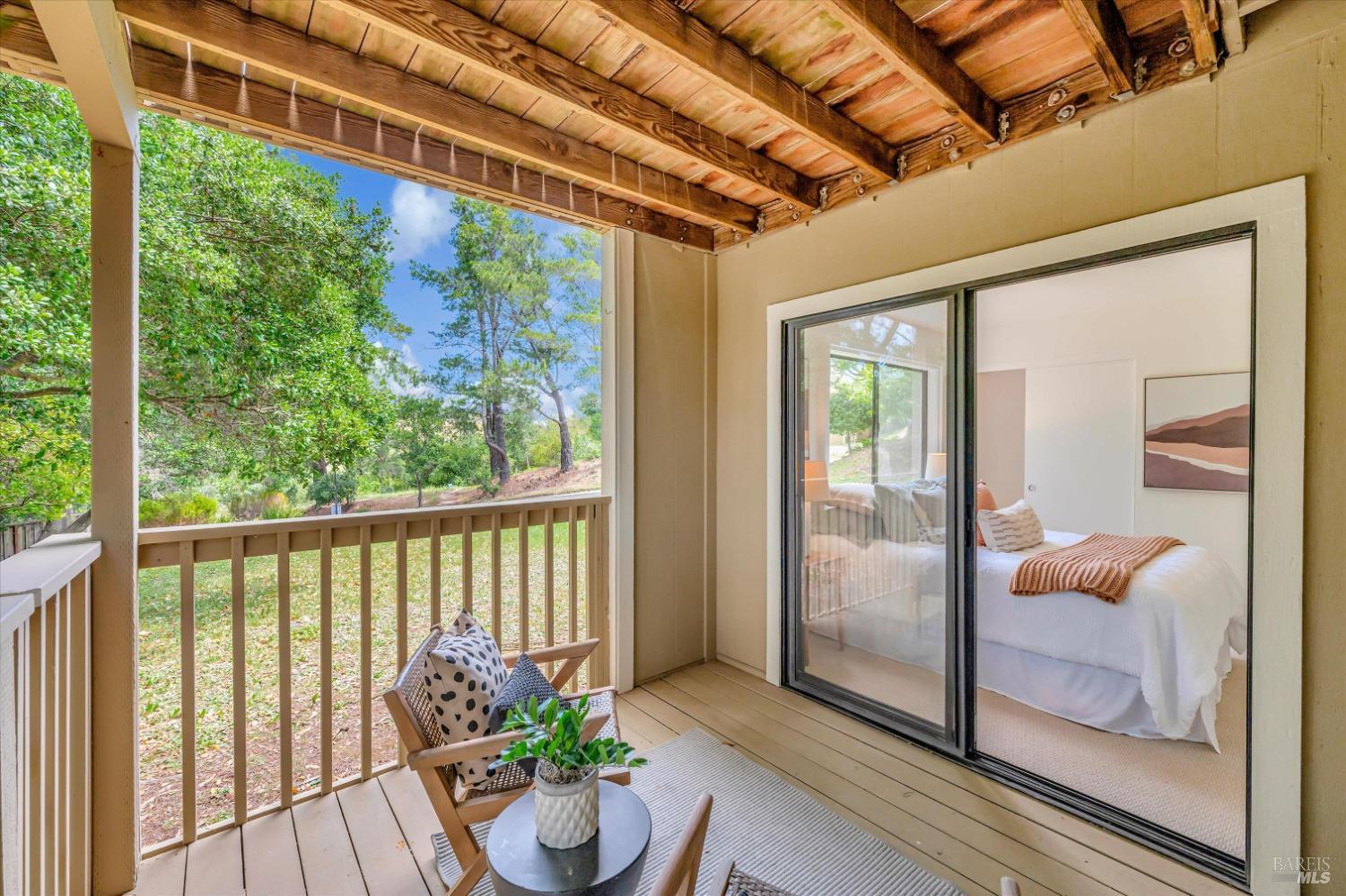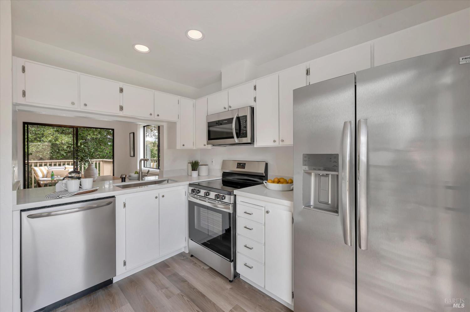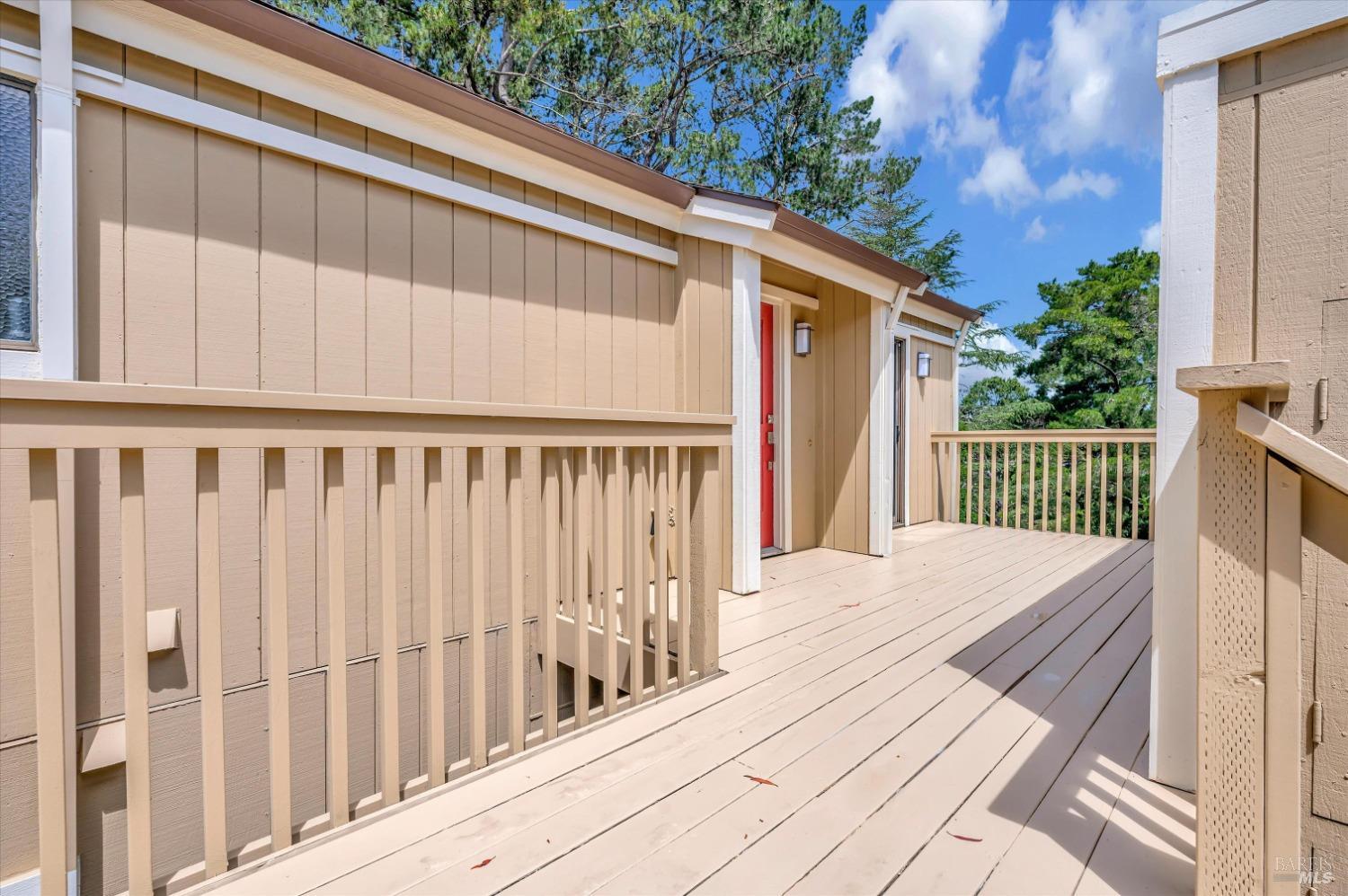 Move right into this 3 BR 2 BA newly renovated Shelter Ridge townhome featuring vaulted beam ceilings, 3 decks, and a 2-car carport with storage. Surrounded by trees, this light-filled 1356 sq. ft. end unit is freshly painted, and has new flooring, kitchen appliances, bathroom vanities, kitchen and bathroom countertops, lighting, and fixtures. Luxury vinyl plank flooring covers the living room, kitchen, and dining areas upstairs, and all three bathrooms, and Berber carpet the bedroom floors downstairs. New quartz countertops complement the just-installed stainless steel kitchen appliances, with the same countertops in the bathrooms. Additionally, the home's exterior was fully repaired and painted in late 2023. The Shelter Ridge clubhouse, pool, and tennis courts afford a space for year-round relaxation, and--unique to this 184-unit planned development---numerous paths in 40 acres of maintained residential and open space are a few steps from every unit. Local shopping, services, and Hwy 101 are minutes away, and close by are award-winning schools, the Mill Valley Recreation Center and community garden, sports fields, a playground, a marsh preserve, dog-friendly trails, and a multi-use pathway leading to Sausalito. It's a beautifully renovated home in an ideal location!