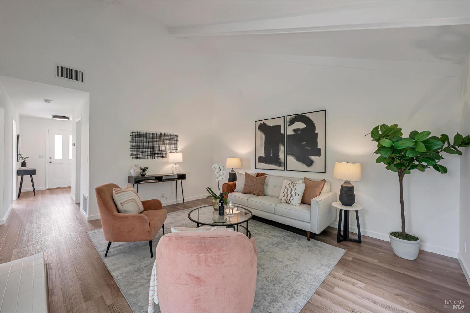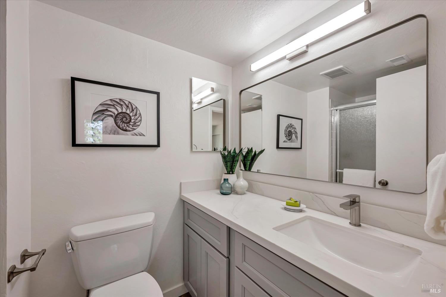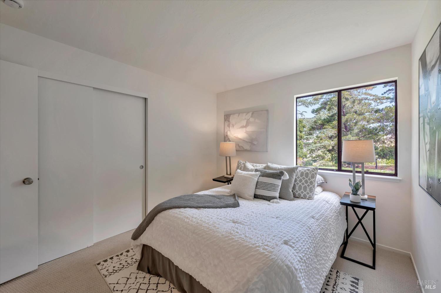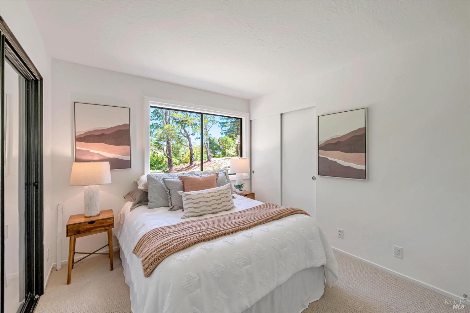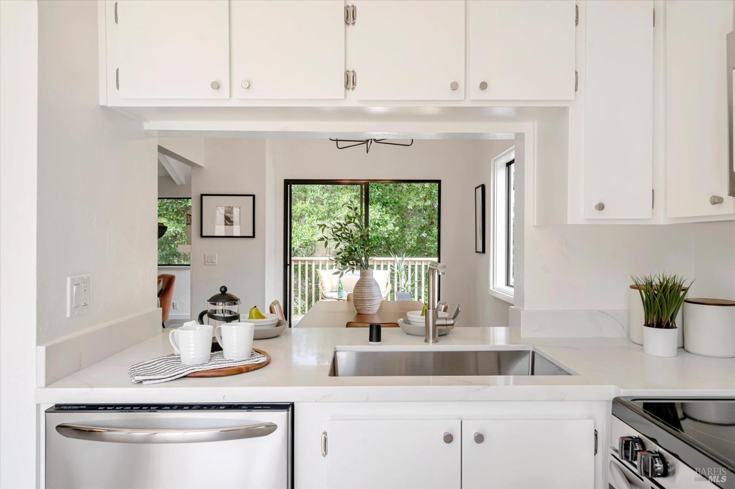 Move right into this 3 BR 2 BA newly renovated Shelter Ridge townhome featuring vaulted beam ceilings, 3 decks, and a 2-car carport with storage. Surrounded by trees, this light-filled 1356 sq. ft. end unit is freshly painted, and has new flooring, kitchen appliances, bathroom vanities, kitchen and bathroom countertops, lighting, and fixtures. Luxury vinyl plank flooring covers the living room, kitchen, and dining areas upstairs, and all three bathrooms, and Berber carpet the bedroom floors downstairs. New quartz countertops complement the just-installed stainless steel kitchen appliances, with the same countertops in the bathrooms. Additionally, the home's exterior was fully repaired and painted in late 2023. The Shelter Ridge clubhouse, pool, and tennis courts afford a space for year-round relaxation, and--unique to this 184-unit planned development---numerous paths in 40 acres of maintained residential and open space are a few steps from every unit. Local shopping, services, and Hwy 101 are minutes away, and close by are award-winning schools, the Mill Valley Recreation Center and community garden, sports fields, a playground, a marsh preserve, dog-friendly trails, and a multi-use pathway leading to Sausalito. It's a beautifully renovated home in an ideal location!