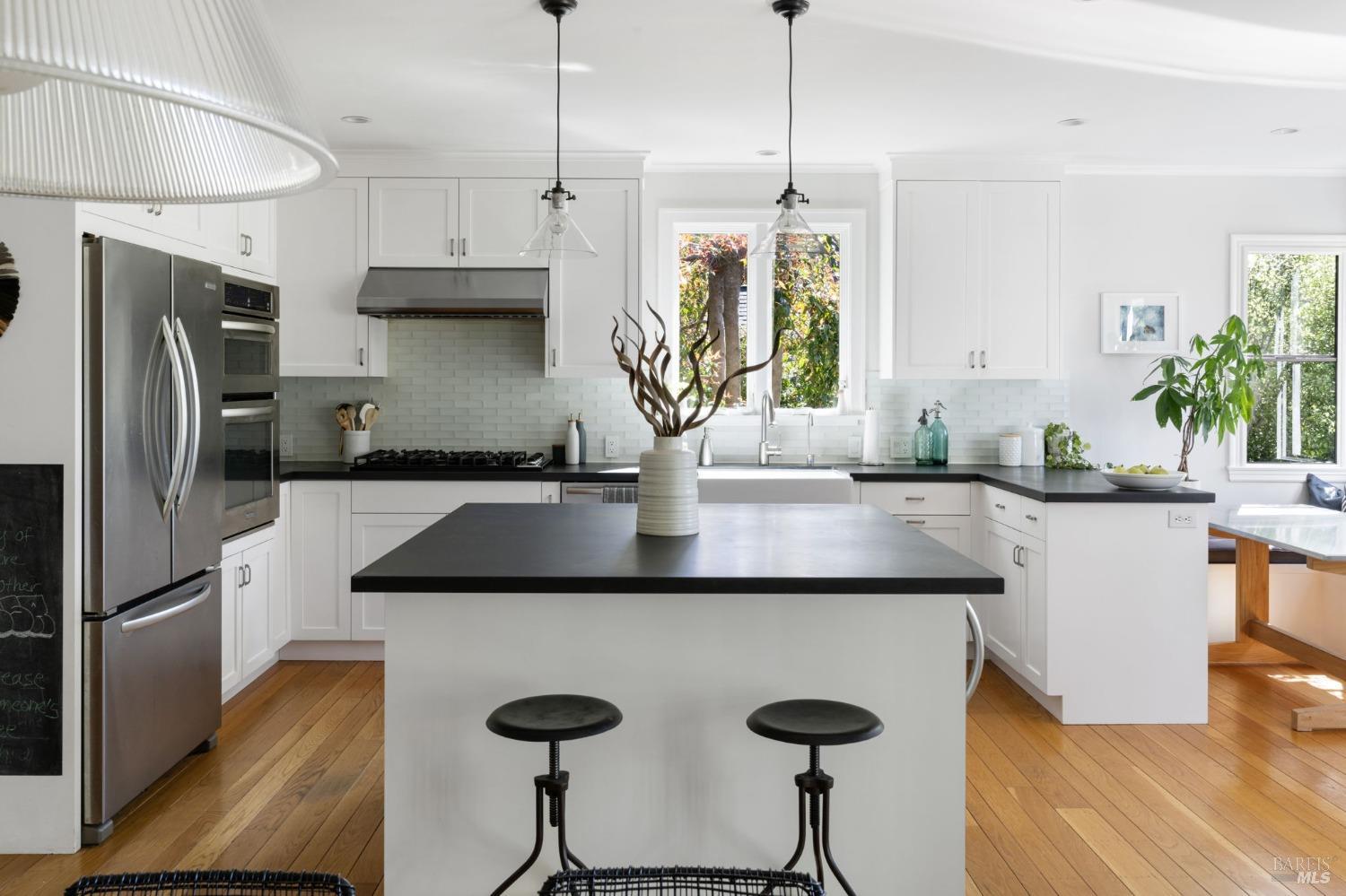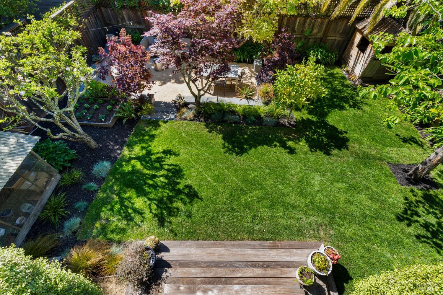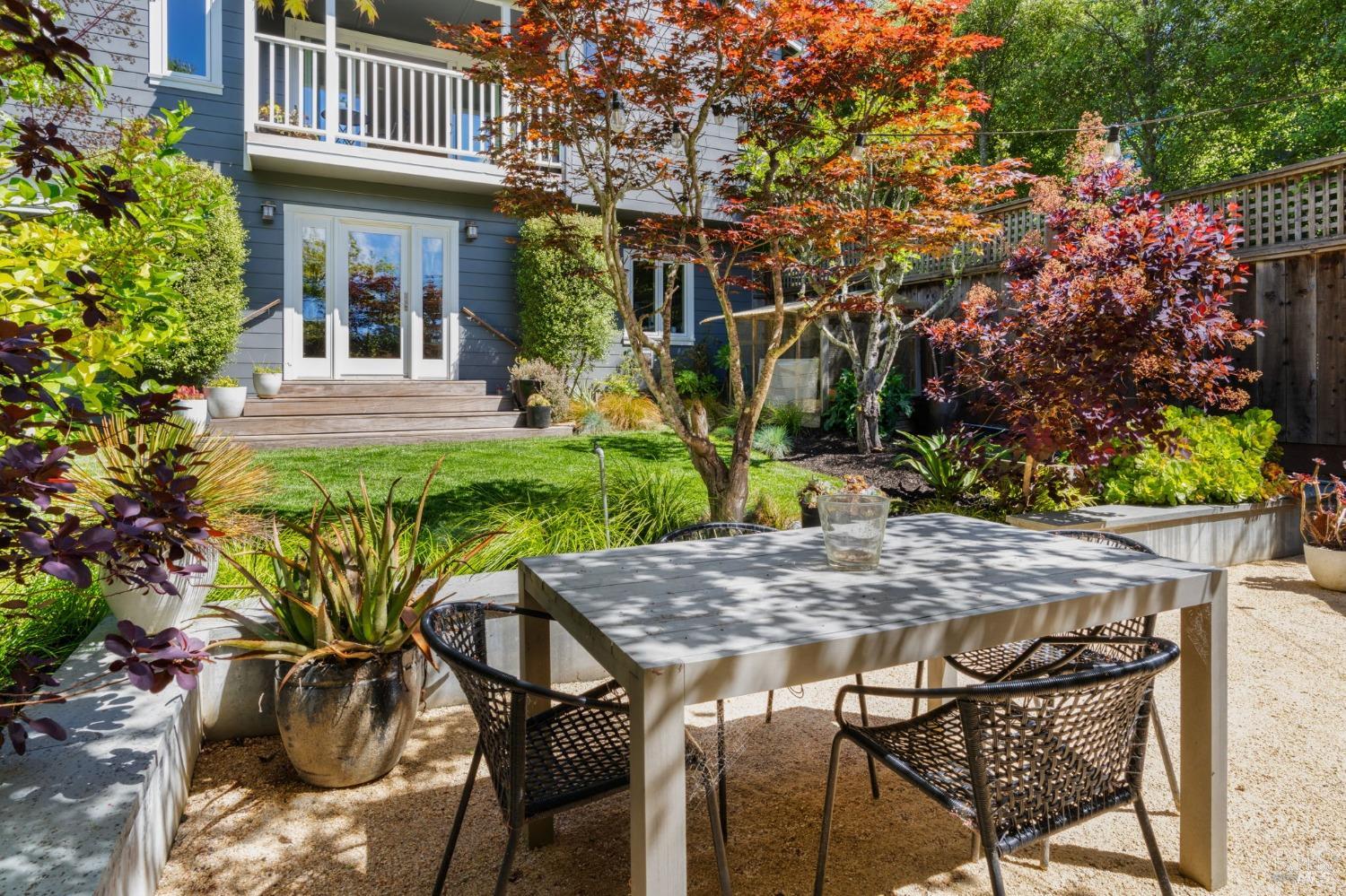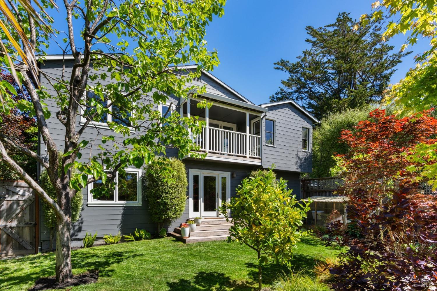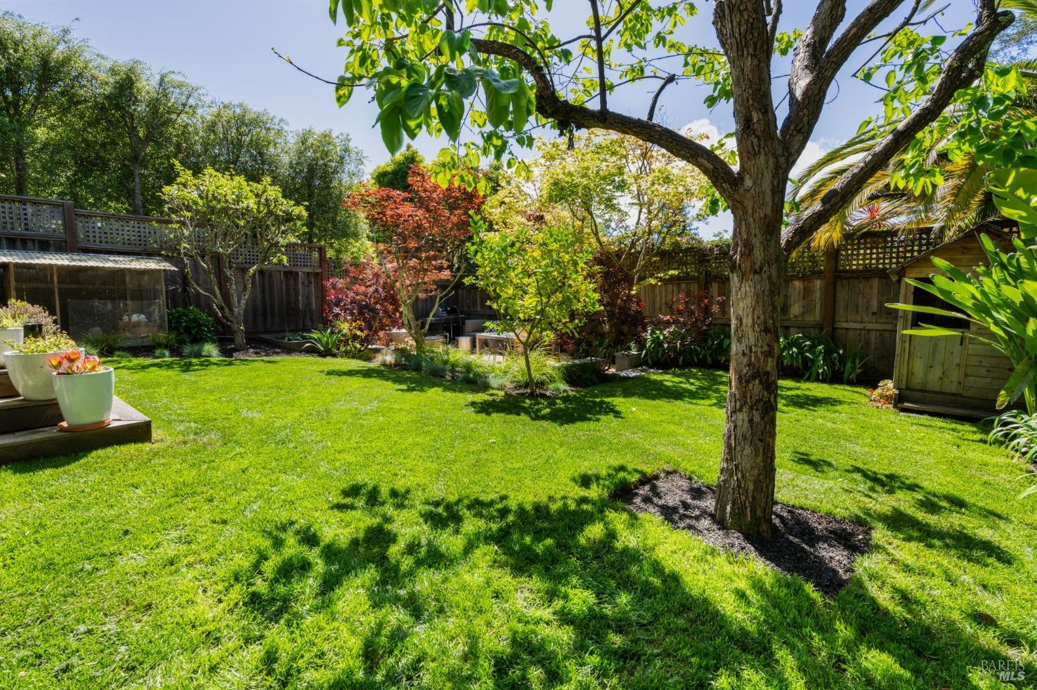 Perfectly located in the coveted lower Palm Hill neighborhood of Larkspur, this stylish, bright, remodeled residence is exactly what buyers have been looking to find. The beautifully remodeled kitchen features a large center island with bar seating, stainless steel appliances, a Viking 6-burner cooktop with hood, a farmhouse sink and an eat-in breakfast area. A large dining area, comfortably seating 10 people, opens up to a serene deck with gorgeous south facing views. This floor includes the primary suite another large bedroom and bath and a gorgeous, large living room with a wood burning fireplace. The lower level has two bedrooms, a bath, a spacious family room, and an oversized garage w/ Tesla charger. The backyard is a lush private oasis with a flat lawn centered by a giant Persimmon tree, an entertaining/dining area bordered by blue stone walls, a raised garden bed, playhouse, and even a chicken coop/bunny hutch. Conveniently situated in one of the most sought-after locations in Marin, 21 Bayview is just a few blocks away from downtown Larkspur's vibrant restaurants, local cafes, and chic shops, as well as the massive Town Park, bike path, world-class hiking and biking trails, the award-winning schools (Neil Cummins Elementary, Marin Primary, Hall Middle, and Redwood High.