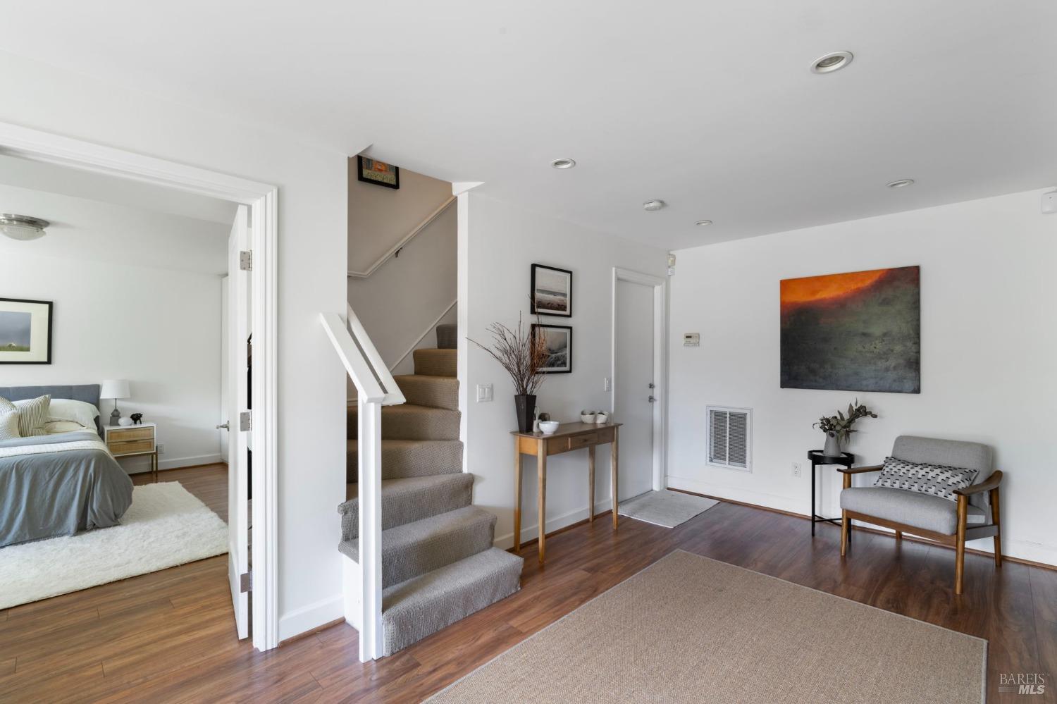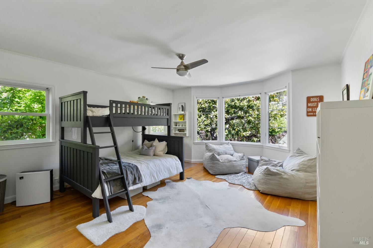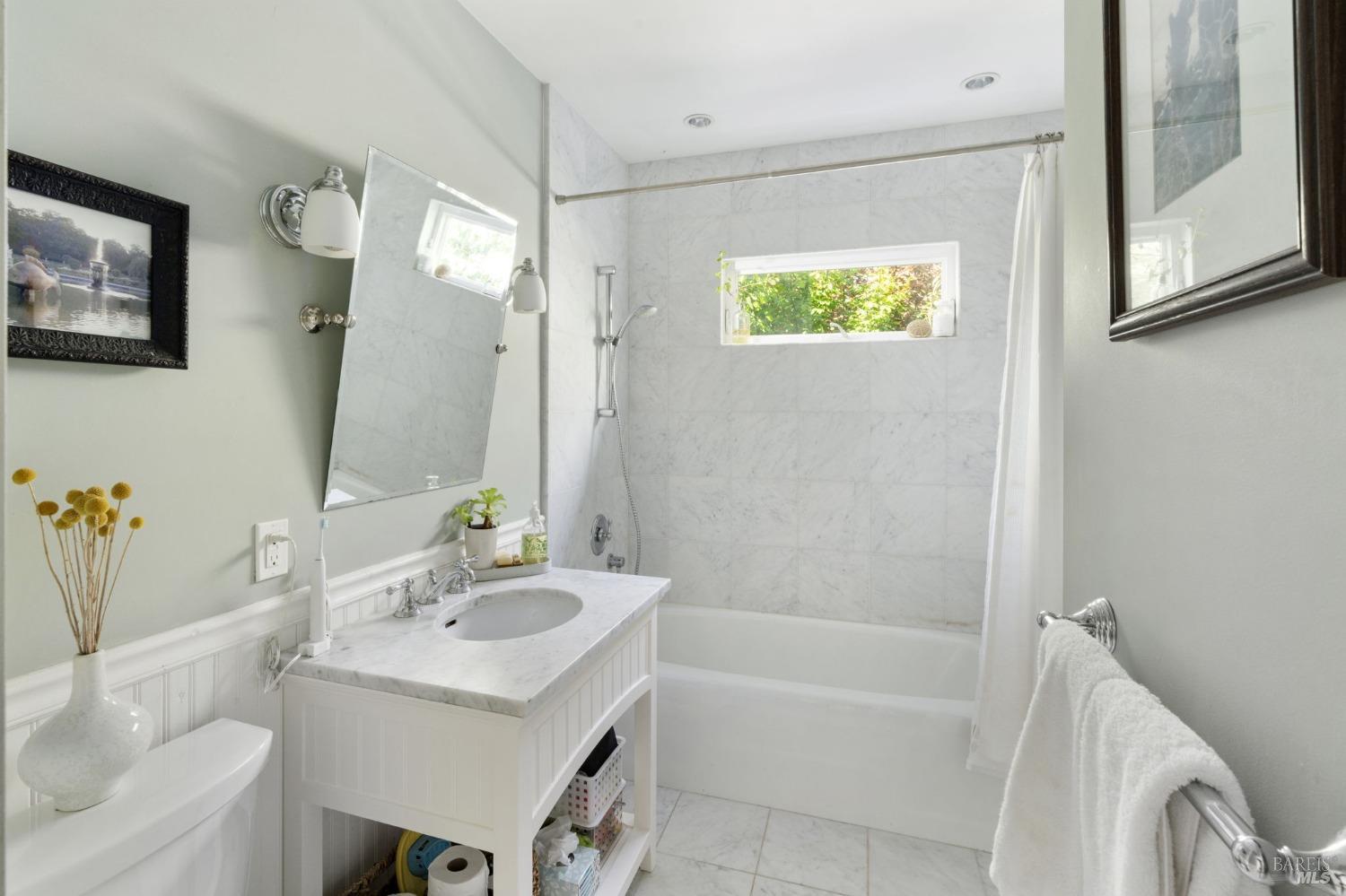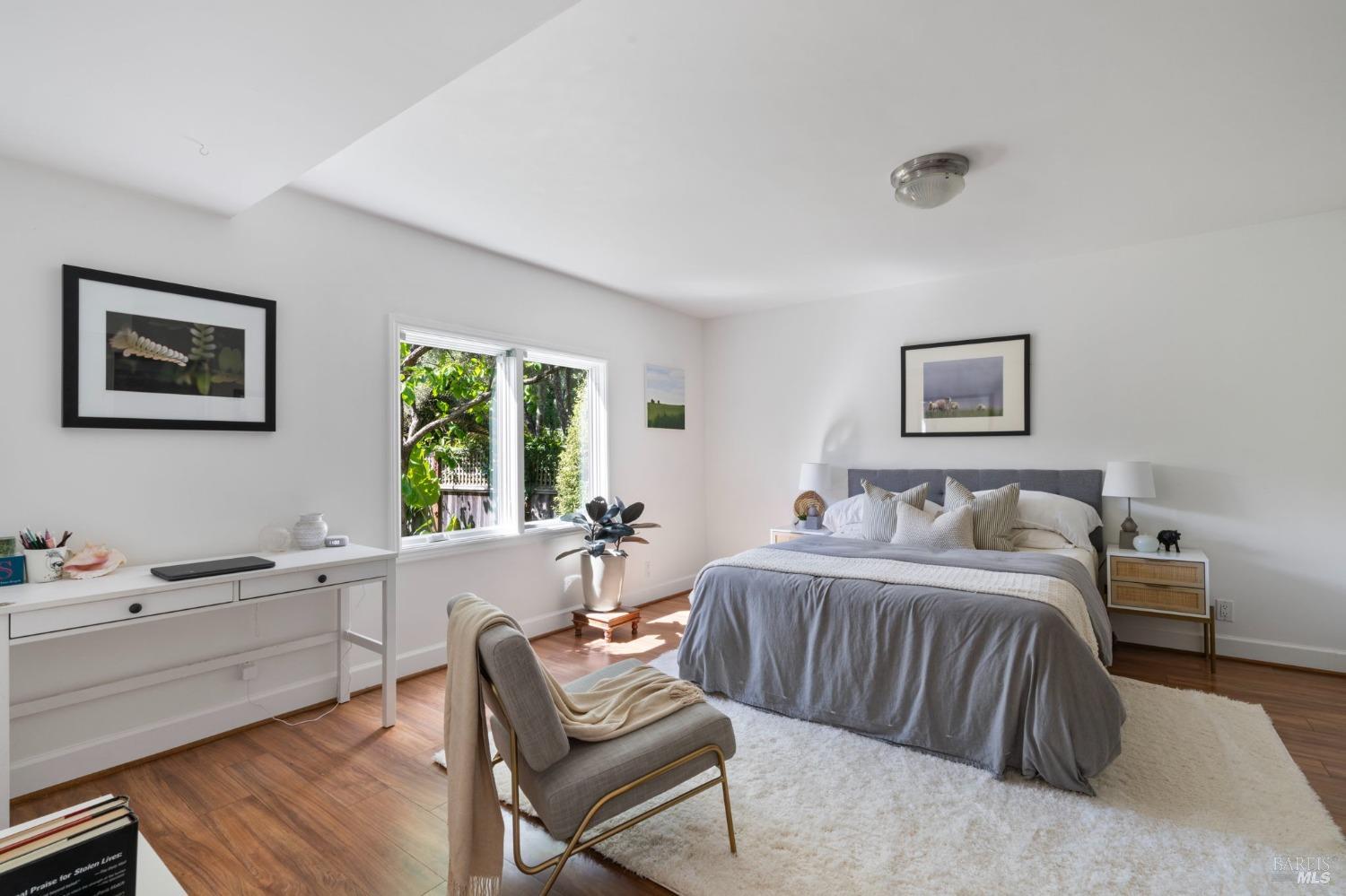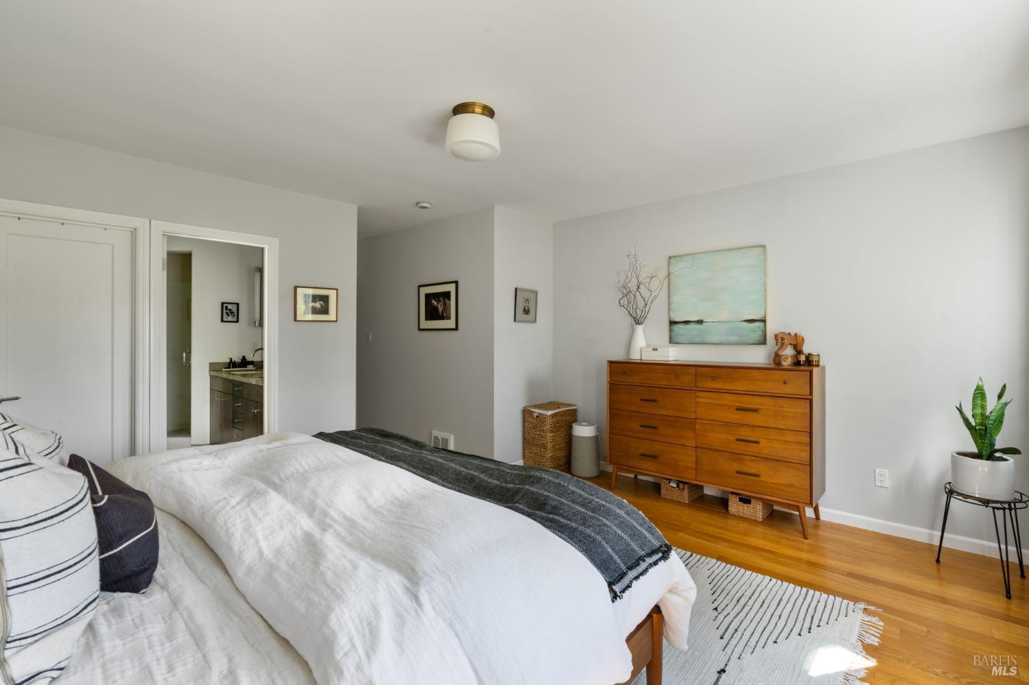 Perfectly located in the coveted lower Palm Hill neighborhood of Larkspur, this stylish, bright, remodeled residence is exactly what buyers have been looking to find. The beautifully remodeled kitchen features a large center island with bar seating, stainless steel appliances, a Viking 6-burner cooktop with hood, a farmhouse sink and an eat-in breakfast area. A large dining area, comfortably seating 10 people, opens up to a serene deck with gorgeous south facing views. This floor includes the primary suite another large bedroom and bath and a gorgeous, large living room with a wood burning fireplace. The lower level has two bedrooms, a bath, a spacious family room, and an oversized garage w/ Tesla charger. The backyard is a lush private oasis with a flat lawn centered by a giant Persimmon tree, an entertaining/dining area bordered by blue stone walls, a raised garden bed, playhouse, and even a chicken coop/bunny hutch. Conveniently situated in one of the most sought-after locations in Marin, 21 Bayview is just a few blocks away from downtown Larkspur's vibrant restaurants, local cafes, and chic shops, as well as the massive Town Park, bike path, world-class hiking and biking trails, the award-winning schools (Neil Cummins Elementary, Marin Primary, Hall Middle, and Redwood High.